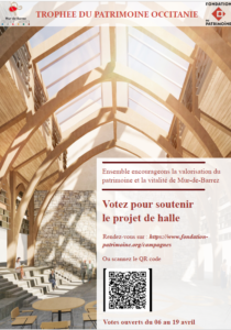 ➡️ le projet de halle a été sélectionné pour représenter l’Aveyron au Trophée du Patrimoine Occitan, organisé par la Fondation du patrimoine. Une campagne de vote est actuellement ouverte (jusqu’au 19 avril).